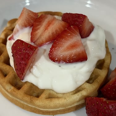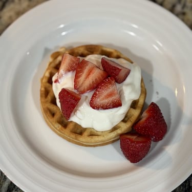 One of our favorite twists is topping the waffles with a generous spoonful of vanilla yogurt and a handful of fresh sliced strawberries. It’s light, refreshing, and has that “fancy brunch” feel—without the price tag or the need to leave the house. The kids love it, and it’s an easy way to sneak in a little extra protein and fruit.