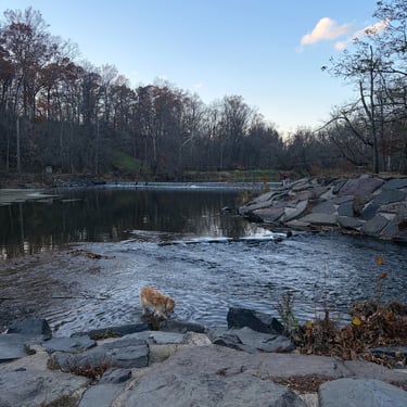 After visiting the bridge, the kids wanted to see more of the park, so we headed over to the main entrance near the Boathouse picnic area along the Neshaminy Creek. That stop ended up being the highlight of the day. They spent ages skipping rocks into the water and climbing around the pedestrian bridge nearby, completely absorbed in the simple joy of creek play.